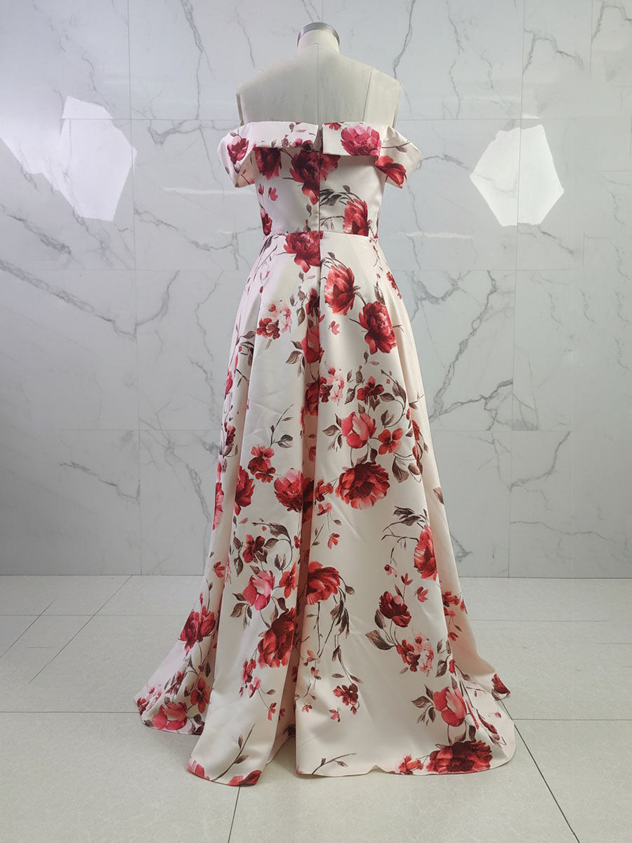 A-Line Off the Shoulder Satin Floral Mother of the Bride Dress With Pockets