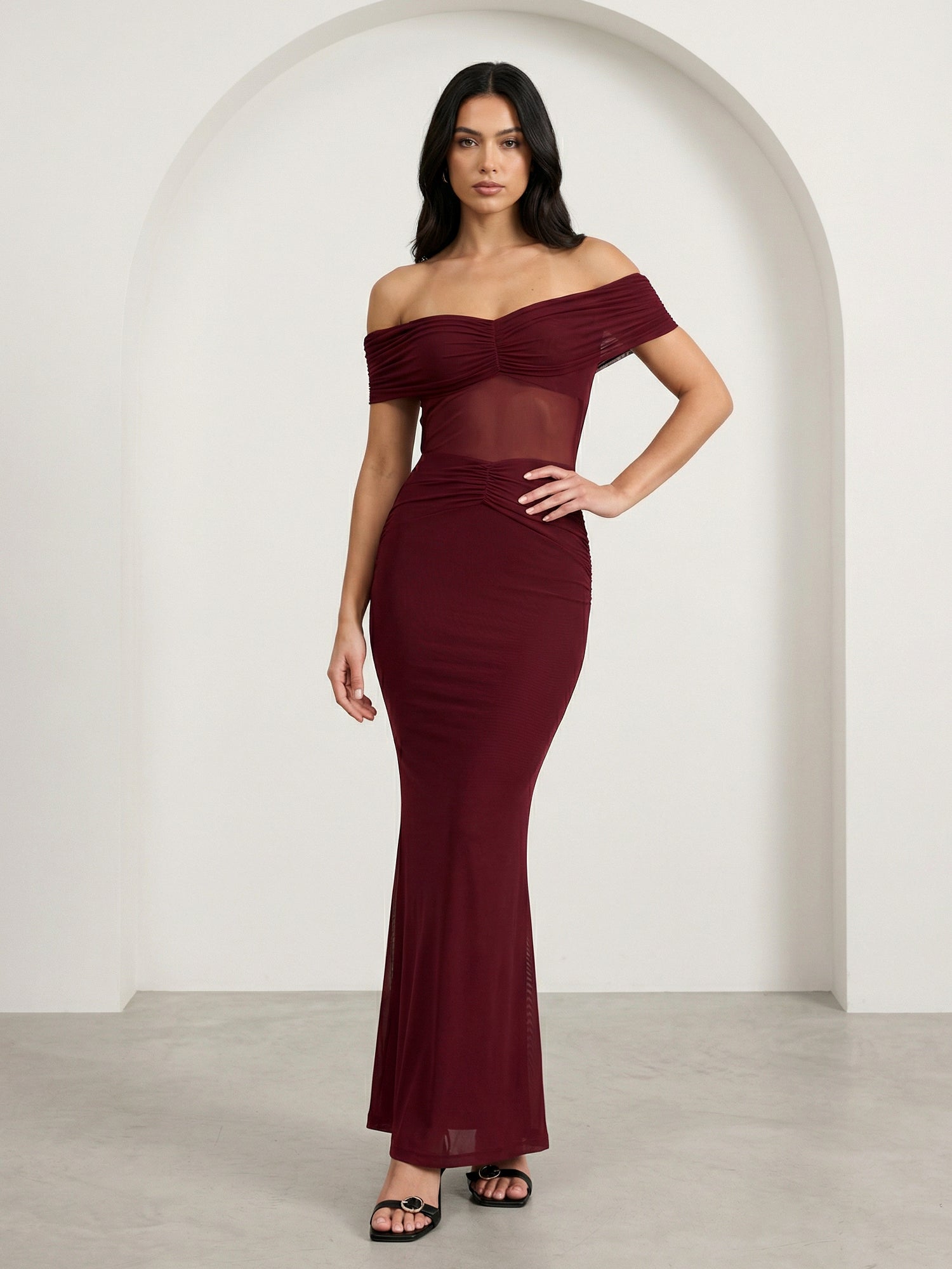 Burgundy Off the Shoulder Mermaid Maxi Dress with Hollowed