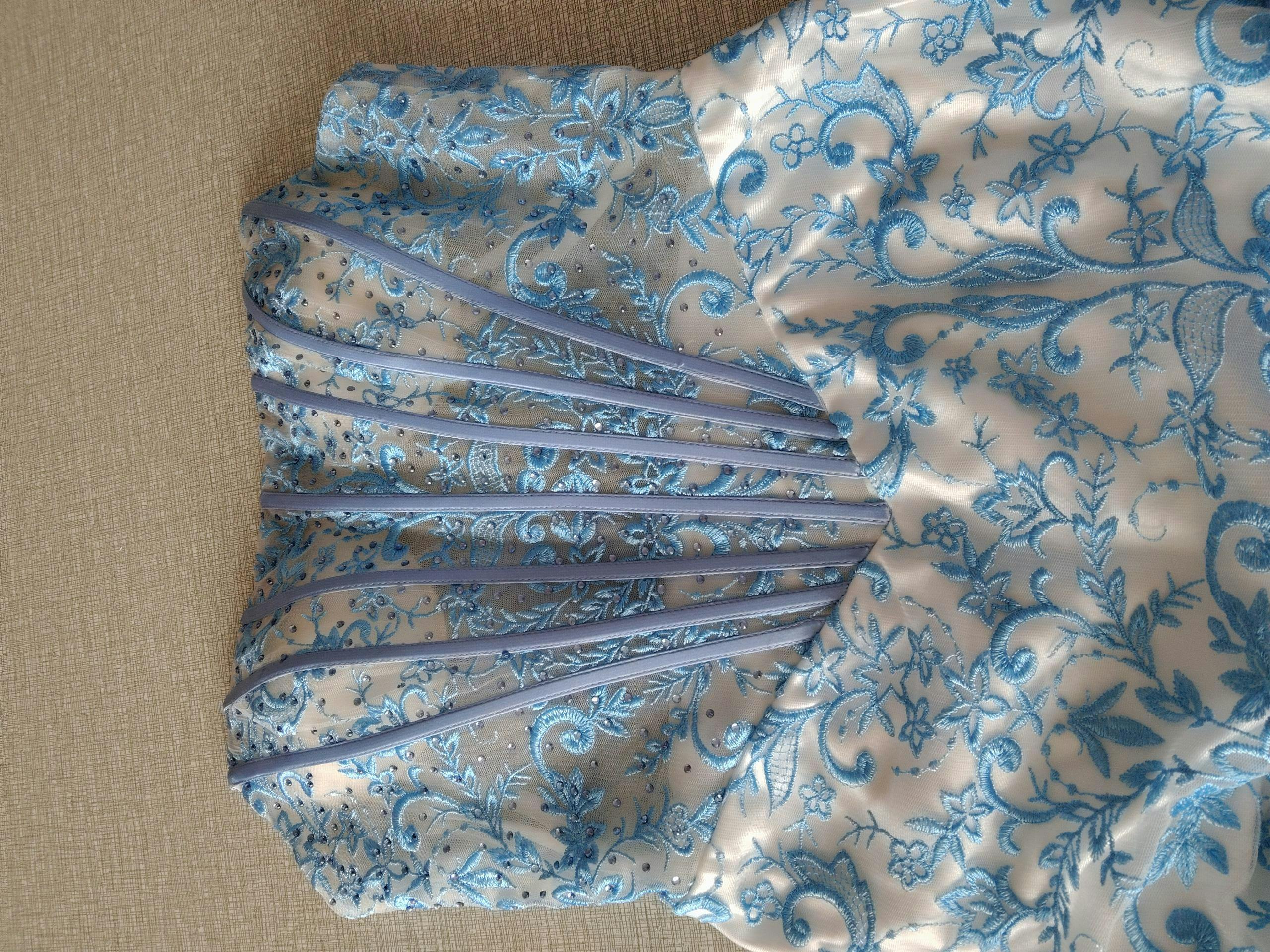 Blue Strapless Pearl Beaded Ruched Corset Long Prom Dress