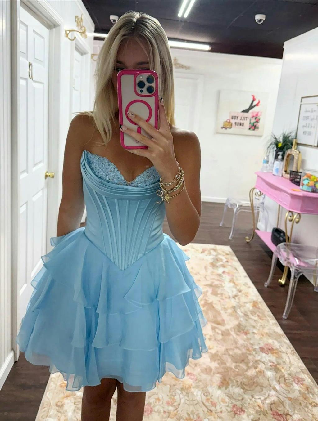 - Features: Corset Bodice, Tiered Ruffle Skirt, Lightweight and Airy Design