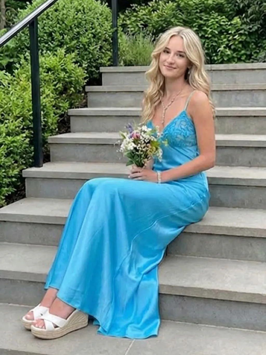 Radiate elegance and charm in this stunning satin slip gown, designed to make a bold yet graceful statement. The sleek silhouette hugs the body beautifully, while the delicate lace-trimmed bodice adds a touch of femininity and sophistication. Thin spaghetti straps frame the shoulders, enhancing the open-back design for an effortlessly alluring look. The smooth satin fabric drapes elegantly to the floor, creating a fluid and glamorous effect with every step. Perfect for prom, formal events, or any special occasion where you want to turn heads with timeless style.