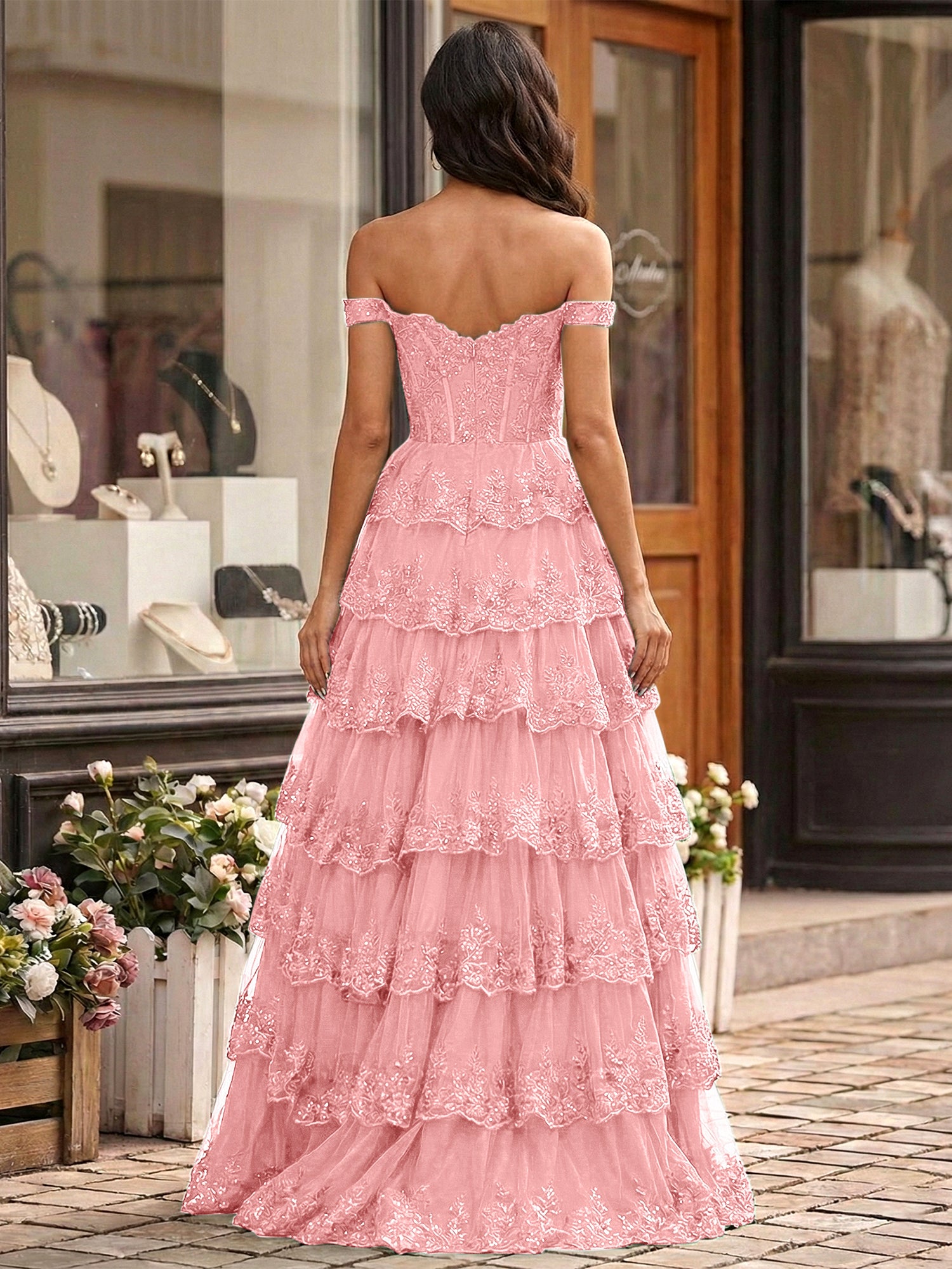• Neckline: Off-the-Shoulder Sweetheart