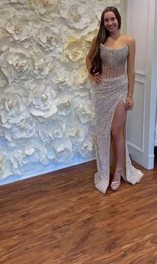 Gorgeous Sparkly Strapless Long Mermaid Prom Dress with Slit
