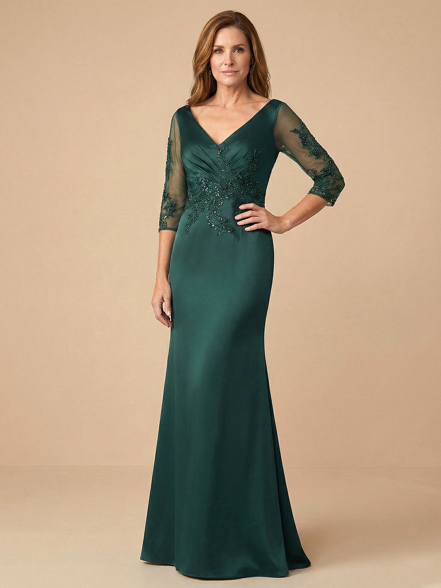 Half Sleeves Lace Applique Mermaid Satin Mother of the Bride Dress for Women