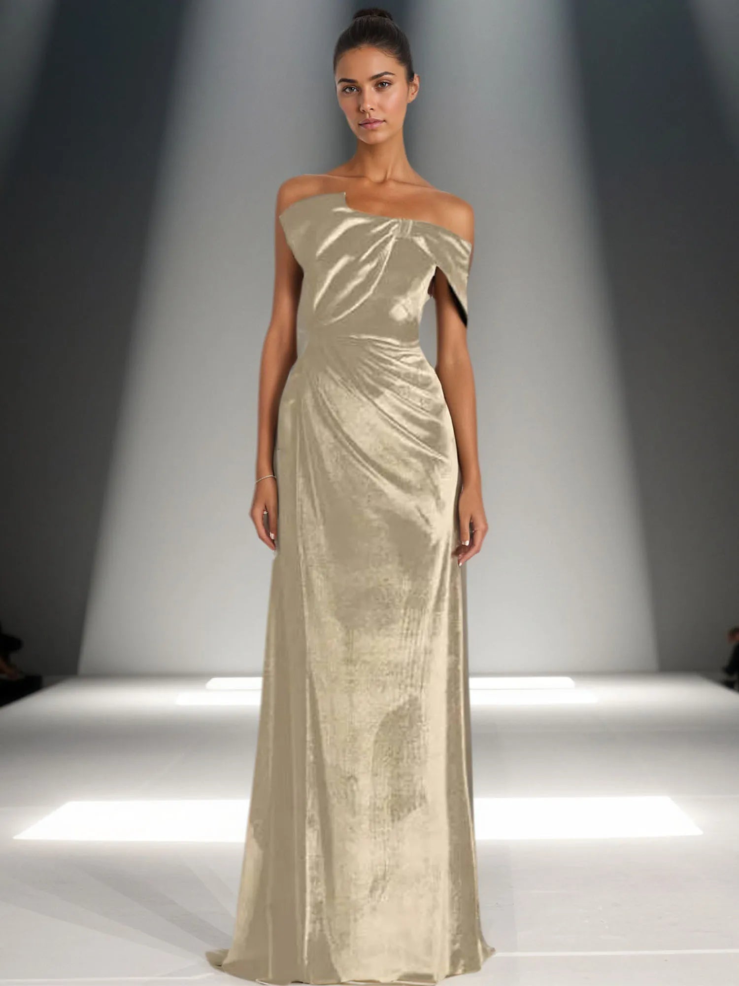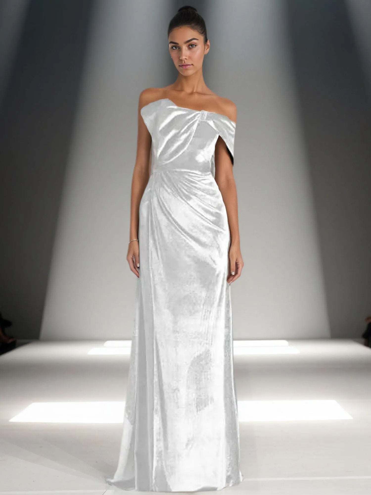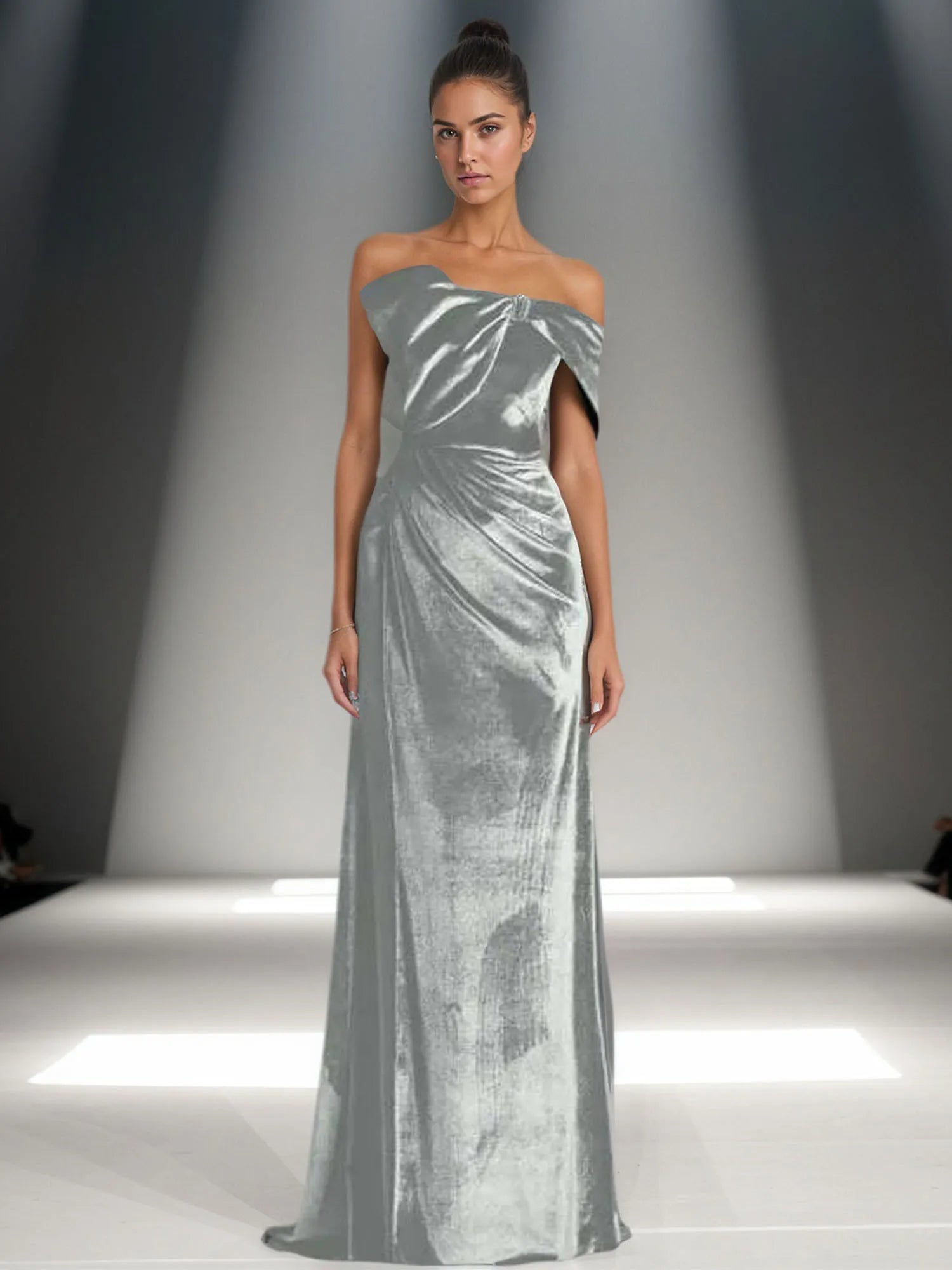 Off-Shoulder Bowknot Detail Velvet Maxi Gown Formal Evening Dress